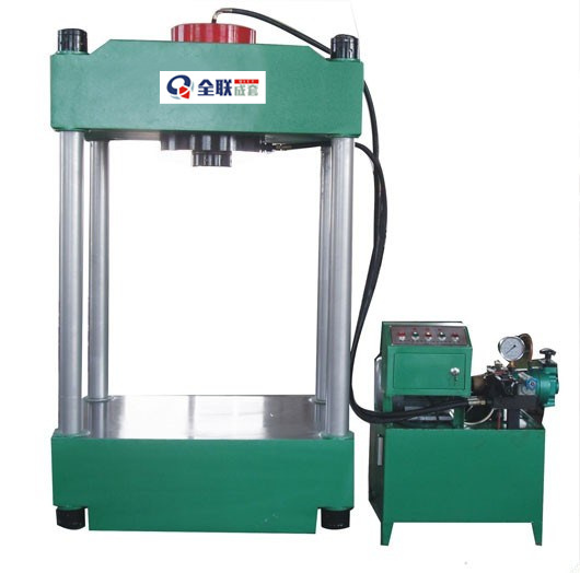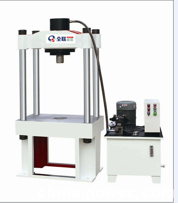 主機部(bu)分:機頂(ding)、工作台(tai)由四根(gen)立柱連(lian)接在一(yi)起,油缸(gang)裝在✡️機(ji)🏃🏻♀️頂底端(duan)内孔上(shang),卡頭裝(zhuang)在油缸(gang)柱塞下(xia)端,與柱(zhu)塞一起(qi)作上下(xia)ˇ往複運(yun)動。機頂(ding)上四隻(zhi)螺母用(yong)于調整(zheng)壓力機(ji)精度。