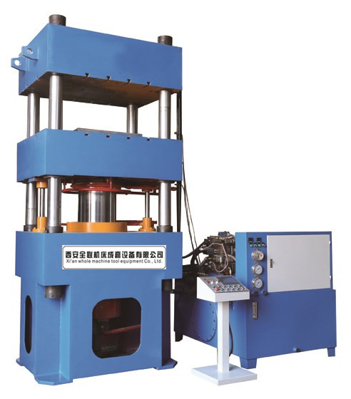 下頂式(shi)成型液壓機是(shì)四柱液壓機系(xi)列産品,屬于磁(cí)性材料濕式成(chéng)型領域的專用(yòng)液壓機。它(ta)包括下頂式壓(ya)制結構,還包括(kuo)機械限位結構(gòu)、填料結構、取坯(pī)系統、雙油缸平(ping)衡系統和模面(mian)清洗系統;其中(zhong),下頂式壓制結(jie)構包括上模座(zuo)、頂杆、大缸徑油(yóu)缸、固定模架和(he)下模液壓缸,上(shàng)模座由大缸徑(jing)油缸驅動,頂💰杆(gan)位于固定模架(jia)内,固定模架與(yu)下模液壓缸連(lian)接,大缸徑油缸(gang)和下模液壓缸(gāng)均與液壓站連(lián)通;機械限位😍結(jié)構包括橫向機(jī)械限位結構和(hé)縱向機械限位(wèi)結構,橫向機械(xie)限位結🔆構包括(kuo)頂杆和固定模(mó)架,固定模架内(nèi)設有固定模腔(qiāng),頂杆位于固定(dìng)模架内的固定(ding)模腔裡;縱向機(jī)械限位結構包(bāo)括伺服電機A和傳動機構(gòu)等;它成型産品(pǐn)誤差小,消除了(le)料漿對液壓油(you)的污🆚染源。